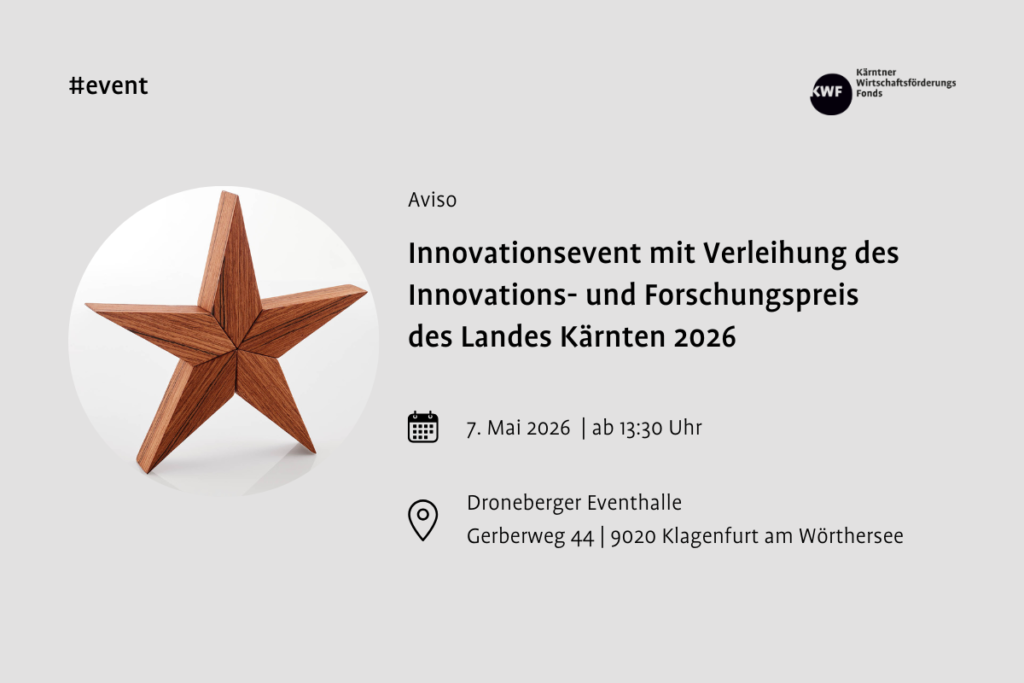 Aviso: Innovationsevent mit Verleihung des Innovations- und Forschungspreis des Landes Kärnten (IFP)